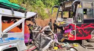 ಬೆಳ್ತಂಗಡಿ : ಖಾಸಗಿ ಬಸ್ ಹಾಗೂ ಯಾತ್ರಾರ್ಥಿಗಳ ತೂಫಾನ್ ವಾಹನಗಳ ನಡುವೆ ನಡೆದ ಭೀಕರ ಅಪಘಾತದಲ್ಲಿ ಮೂವರು ಸಾವನ್ನಪ್ಪಿ ಹಲವಾರು ಮಂದಿ ಗಾಯಗೊಂಡ ಘಟನೆ ಕಾರ್ಕಳ ತಾಲೂಕಿನ ಮಿಯಾರು ಎಂಬಲ್ಲಿ ನಡೆದಿದೆ.