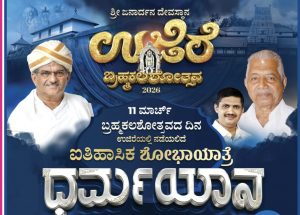 ಬೆಳ್ತಂಗಡಿ: ಮಾರ್ಚ್ 11 ಉಜಿರೆ ಶ್ರೀ ಜನಾರ್ದನ ದೇವರ ಬ್ರಹ್ಮಕಲಶೋತ್ಸವ ದಿನ ಸಾವಿರಾರು ಕಲಾವಿದರು,25 ಸಾವಿರಕ್ಕೂ ಹೆಚ್ಚು ಭಕ್ತಾದಿಗಳಿಂದ ಸಂಜೆ ಗಂಟೆ 4.00ರಿಂದ ಉಜಿರೆ ಡಿ.ರತ್ನವರ್ಮ ಹೆಗ್ಗಡೆ ಕ್ರೀಡಾಂಗಣದಿಂದ ಧರ್ಮಯಾನ ಐತಿಹಾಸಿಕ ಶೋಭಾಯಾತ್ರೆ ನಡೆಯಲಿದೆ ಎಂದು ಉಜಿರೆ ಲಕ್ಷ್ಮೀ ಇಂಡಸ್ಟ್ರೀಸ್ ಕನಸಿನ ಮನೆ ಮಾಲಕರು, ಗೋಪುರ ನಿರ್ಮಾಣ ಸಮಿತಿ ಮತ್ತು ಬ್ರಹ್ಮಕಲಶೋತ್ಸವ ಸಮಿತಿ ಪ್ರಧಾನ ಸಂಚಾಲಕ ಮೋಹನ್ ಕುಮಾರ್ ಅವರು ತಿಳಿಸಿದ್ದಾರೆ.